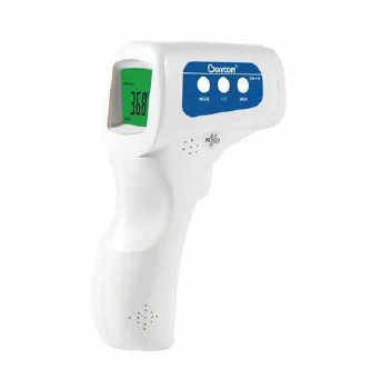 - Termómetro de infrarrojos sin contacto, diseñado para medir la temperatura corporal mediante la emisión del calor de la frente y para la medición de la temperatura en objetos.